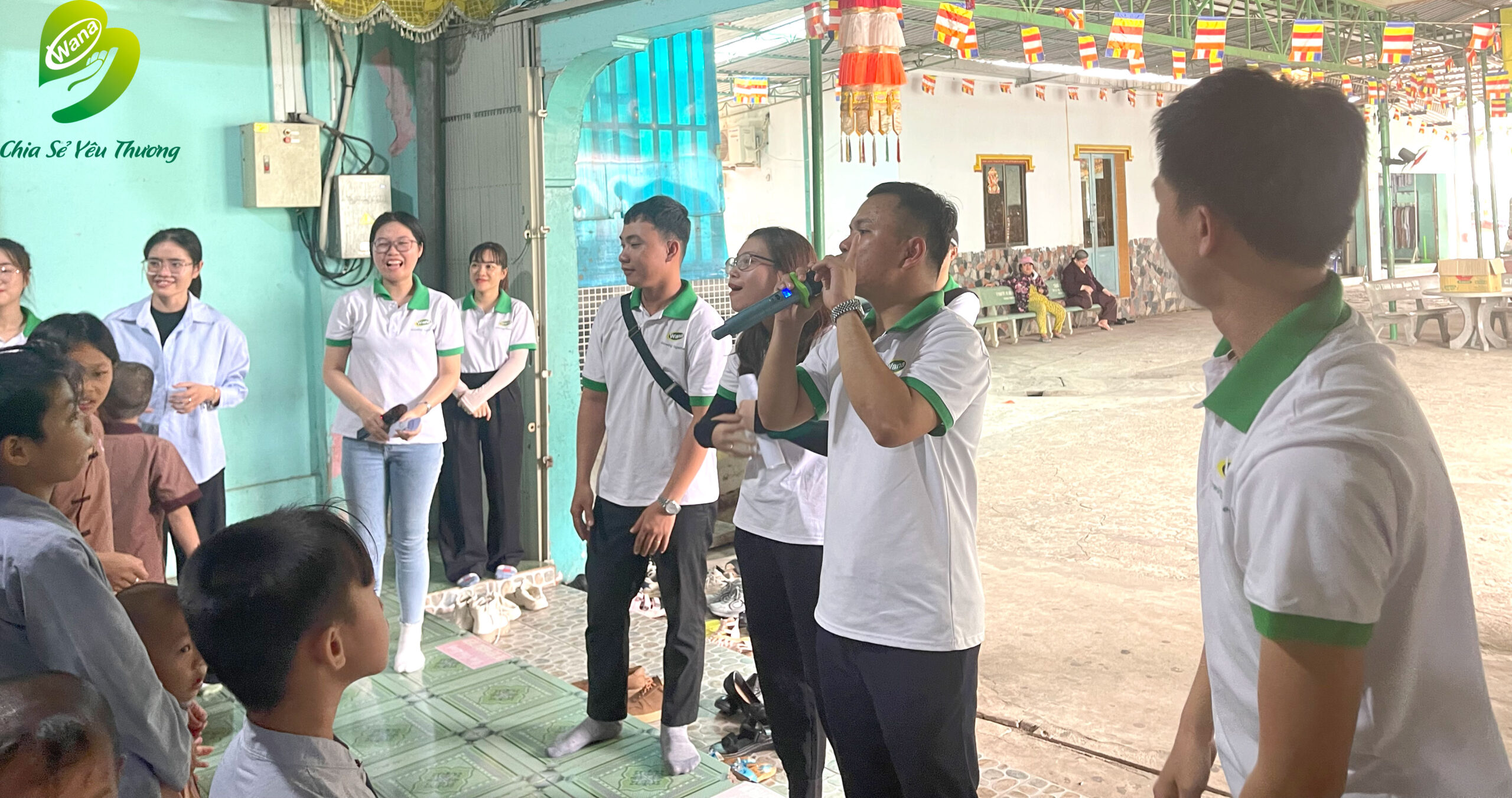 On September 23, the WANA Beverage team organized a trip to Bong Lai Monastery in Ba Ria – Vung Tau province to meet and bring gifts to over 80 children. In addition to traditional Mid-Autumn lanterns and special mooncakes, the WANA Team also prepared fried chicken, french fries, sausages, and bubble tea – all dishes that every child loves.
